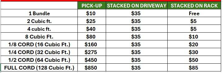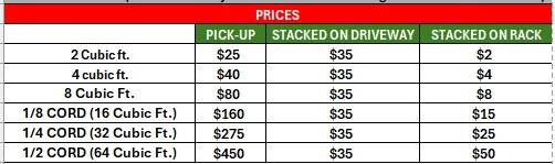 MIXED FIREWOOD - 1/8 Cord (16 Cubic ft.) US$120.00