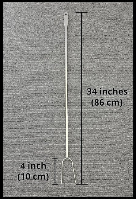Upgrade your outdoor cooking gear with this 34-inch (86 cm) stainless steel roasting fork featuring a sleek flat handle with a convenient hanging hole. Its 4-inch (10 cm) dual prongs provide secure holding for marshmallows, sausages, hot dogs, and more over an open flame. Built for durability and ease of use, this heavy-duty fork is perfect for camping, backyard fire pits, and BBQ grilling. Rust-resistant and easy to clean, it's a reliable tool for any outdoor chef.